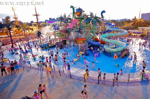 位于重庆九龙坡区华岩风景区,是一处以魔幻"水"文化为主题,也是中国唯一利用起伏山地形态规划建设的水上乐园。它拥有水上过山车等众多国际戏水、休闲设施:面积达10000平方米的中国最大海啸冲浪,最大浪高超过3米;上万平米的中国内陆最大的人造真沙休闲海滩;国内首台水上过山车、大喇叭、大浪摆、魔法碗等游乐设备。阳光、沙滩、比基尼、海浪、音乐、游乐设备,六大要素相互叠加穿插,形成一个富有激情、充满动感、欢乐浪漫的水上狂欢世界。