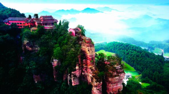 山道崎岖,峭壁千仞,四十八面,险象环生;游人攀登,有时面临峭壁,背负深渊,有时脚踏薄雾,目中空物;悬涯绝境云吞雾腾,身临其境,回肠荡气,深感险。