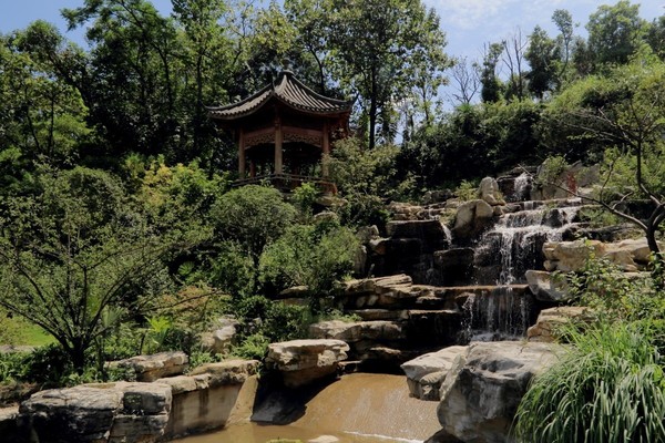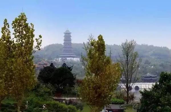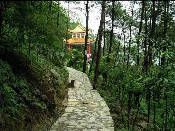 在平定山上可远观照母山郁郁葱葱,犹如一条绿色长龙,蜿蜒盘旋;可近赏巨树修竹,芳草香花星罗棋布,摇曳生姿。