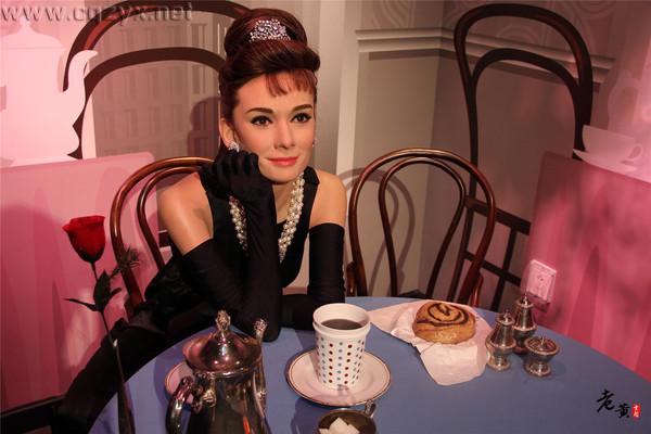 这尊赫本的像,是爱美之人不容错过的。这里设计的场景是一个餐厅饭桌上,即使是如此的环境,依然掩盖不了这位绝世美人的光芒。她右手轻托下颌,脸上是她标志性的微笑。赫本作为20世纪全球公认的美人,除了绝佳的五官外,更有她与生俱来的公主气质。在这尊蜡像中,我们也很轻易就能感受到。这座蜡像的照相方法,你可以和赫本摆出一样的pose,或者各种表情,当然夸张一点更好,在蜡像馆照相更多的应该是大胆的创意。