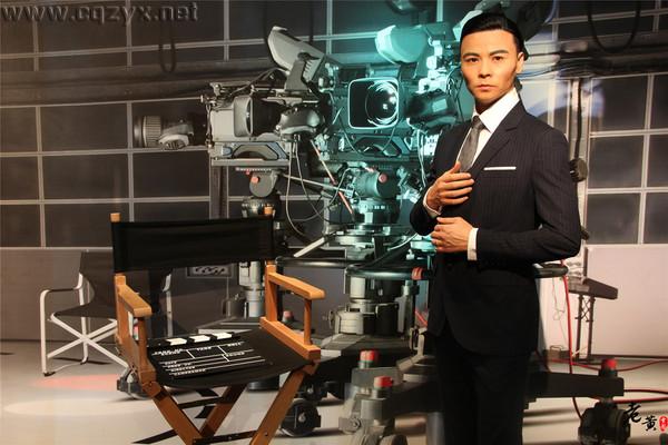 接下来是咱们重庆崽儿张晋的蜡像了。第一眼看到这形象,贼帅。细看下来也不赖,人物的轮廓和动作惟妙惟肖的。而配合这尊蜡像的背景是录影棚。这里的照相方法自然是冒充一下导演咯,拿着打板刁难一下这位武术明星吧!