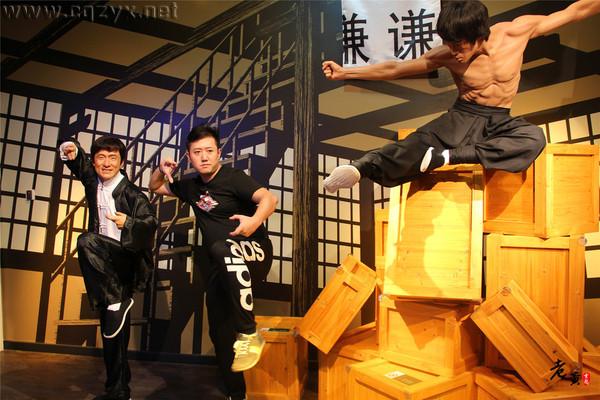 而成龙的形象,更贴近他平时给观众的印象,虽然是武术,但笑料比打斗多。在这里我们不妨试试应景的照相方法。来个pose,被李小龙飞踢的惨状,或者跟成龙大哥来个醉拳的招式。乐趣多多。