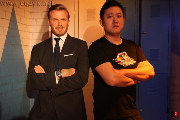 接着是足坛两位帅哥了。小贝虽然已经褪下了球服,但脚下依然踩着一个足球,给人们展示着永远的英格兰7号,永恒的圆月弯刀。而旁边的C罗就相当霸气了,后面的墙上附和着万千狂热的球迷,他们欢呼呐喊,将热情全部投入,只为这位外貌球技都堪称一流的巨星。在这里,友情提示,身高太矮的就不要去合照了,因为两位巨星的身高都超过了183,太矮的话,会伤心有木有。