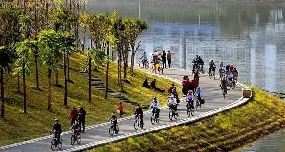 推荐路线第一条,环湖之旅。现在汉丰湖水已经蓄起来啦,挑一个阳光温柔的下午,慢慢骑行在环湖路上……