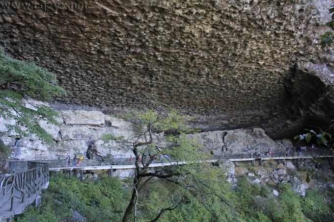 走在绝壁栈道上看到的第一个洞穴—燕子洞,大的出奇, 上面全是蜂窝一样的。
