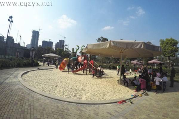 重庆天地儿童乐园,是天地湖内一个以儿童游乐为主题的公益性,开放性的区域;有沙坑、秋千、组合滑梯等各种造型的儿童游乐设施,免费向公众开放。